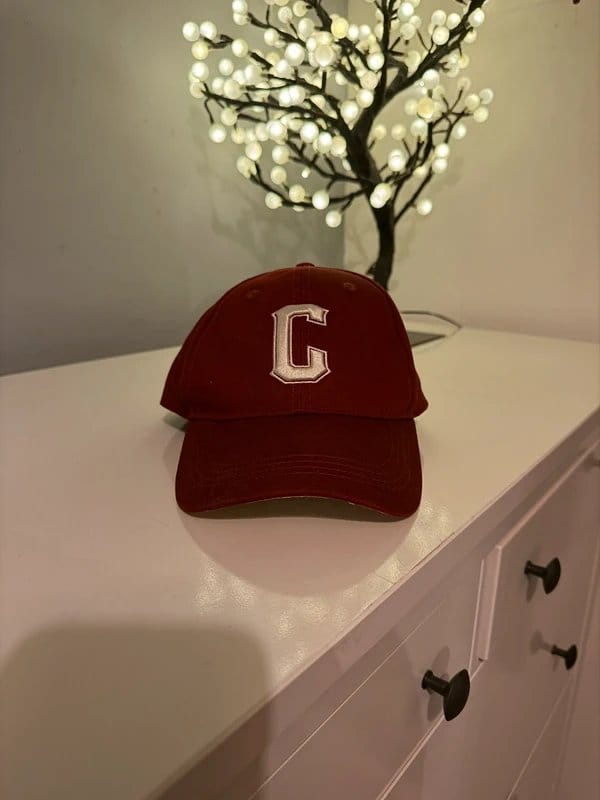 Striking baseball cap in a rich deep burgundy tone, finished with a crisp embroidered monogram to the front and subtle New York embroidery at the back. The colour alone elevates this piece instantly, reading far more premium than a standard cap and pairing beautifully with neutral, tonal and autumnal outfits.