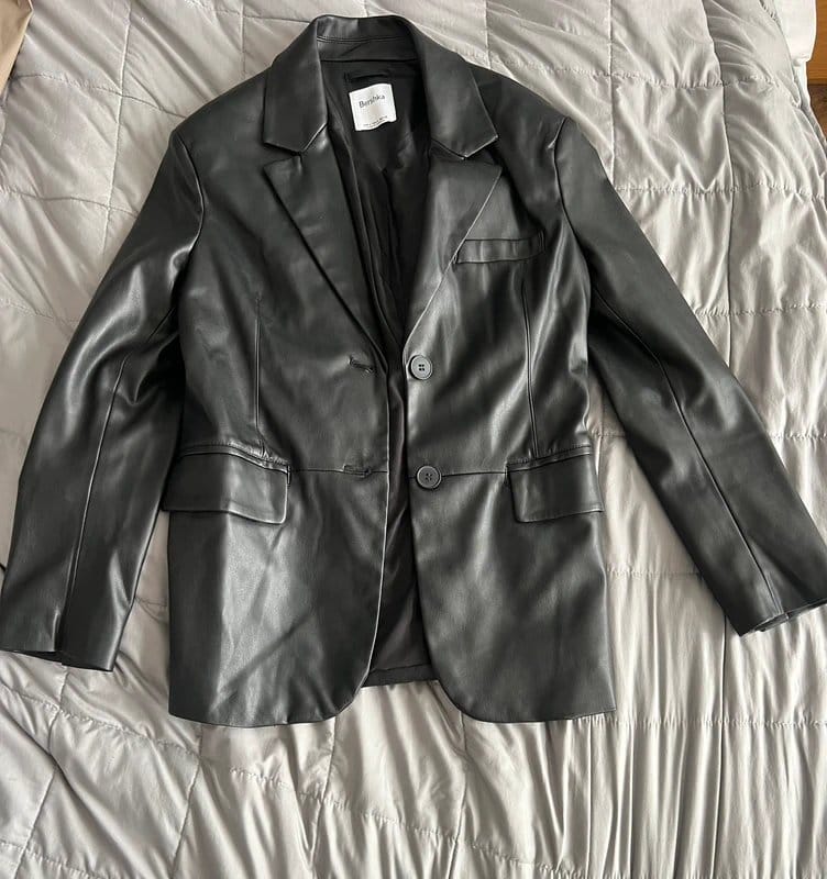 The Bershka Black Leather Oversized Blazer is available in sizes S.