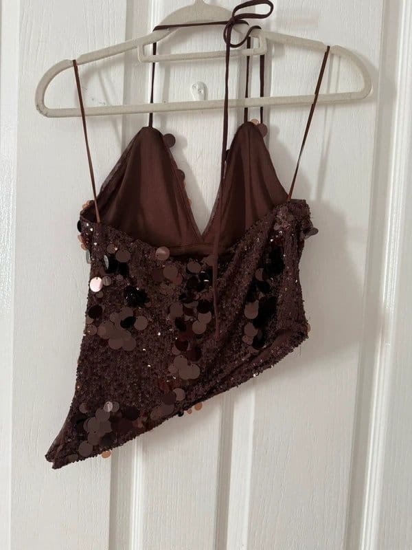 Bershka Brown Sequin Top