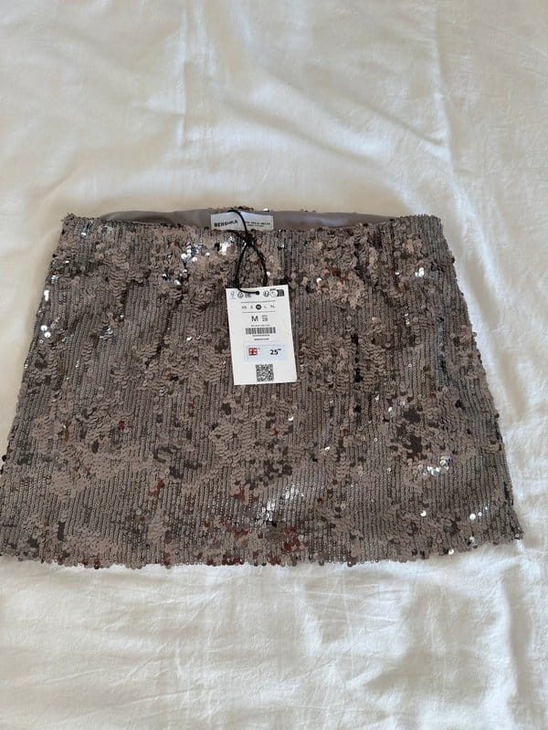 The Bershka Silver Sequin Mini Skirt is available in sizes M.
