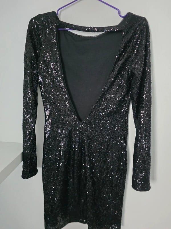 The Bershka Black Sequin Mini Dress – Size S is available in sizes S.