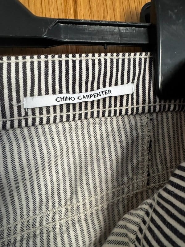 Stylish Bershka cargo trousers in a black and white striped pattern. Made from durable denim fabric, these trousers feature multiple pockets and a relaxed fit. Ideal for casual outings or layering over a t-shirt.