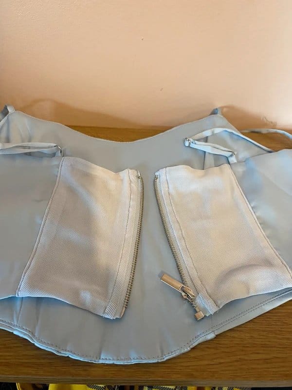 Light blue mesh crop top by Bershka featuring a boned bodice panel at the front and a zipper closure at the back. Designed for a shaping effect, perfect for casual wear.