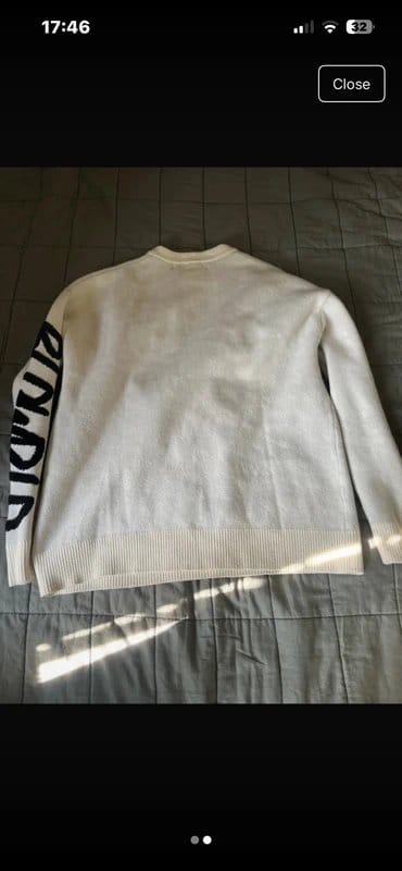 The Bershka Cream & Black Graphic Crew Neck Jumper is available in sizes M.