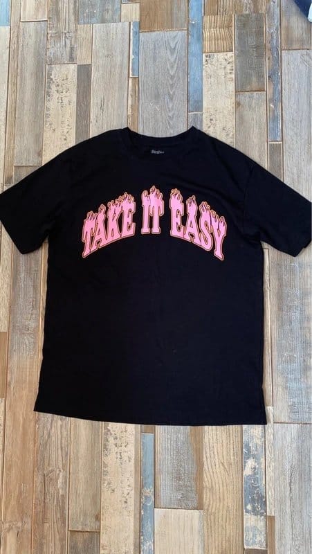 View Vinted's returns policyThe Bershka Black & Pink Slogan T-Shirt is made from cotton.