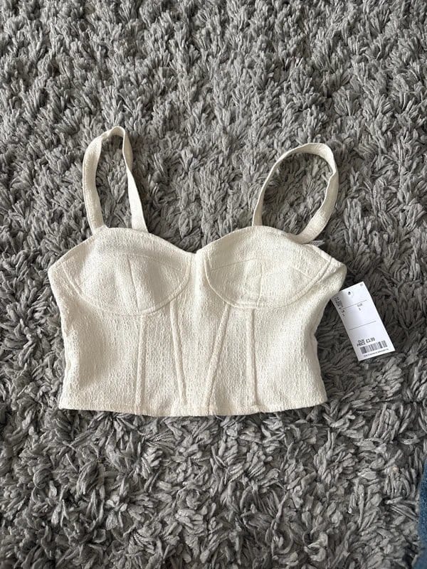 The Bershka Cream Corset Top is ideal for casual, evening, date-night.