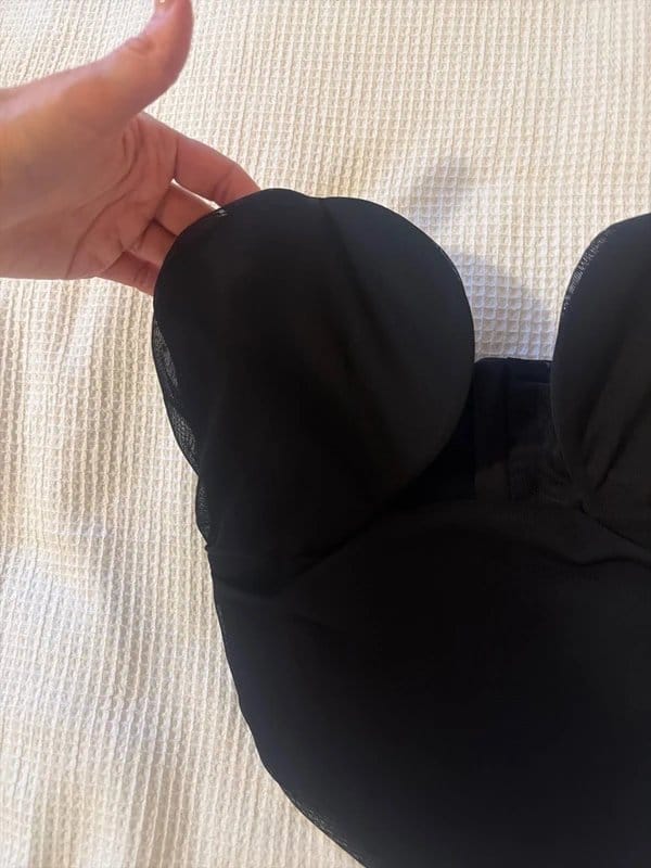 “Pair this top with black high-waisted trousers and black pointed-toe ankle boots for a chic evening ensemble.”