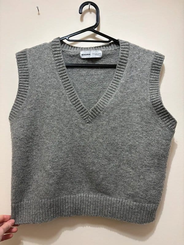 The Bershka Grey Ribbed V-Neck Vest is available in sizes S.