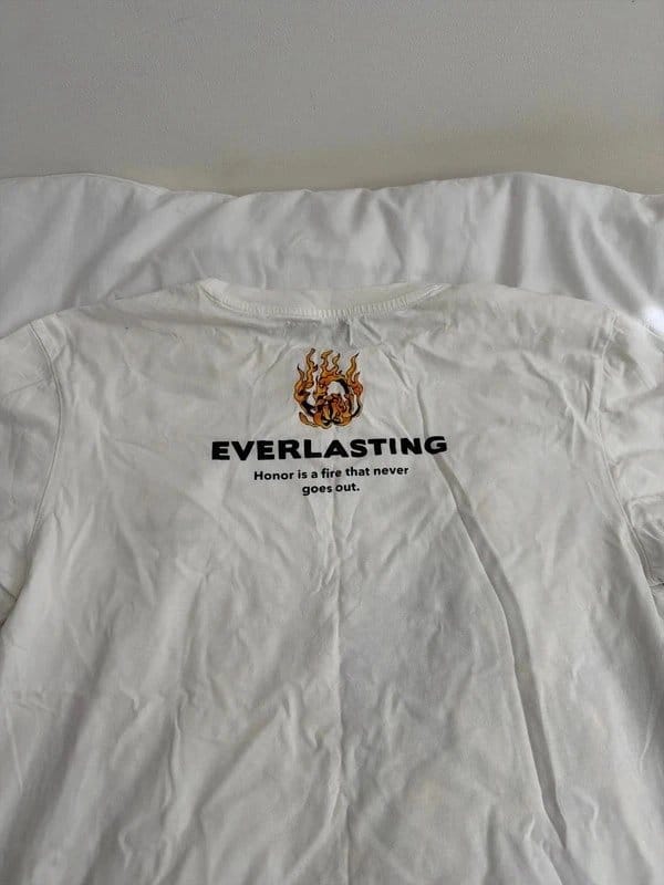 The Bershka White Graphic T-Shirt with Eagle Flame Print is available in sizes M.