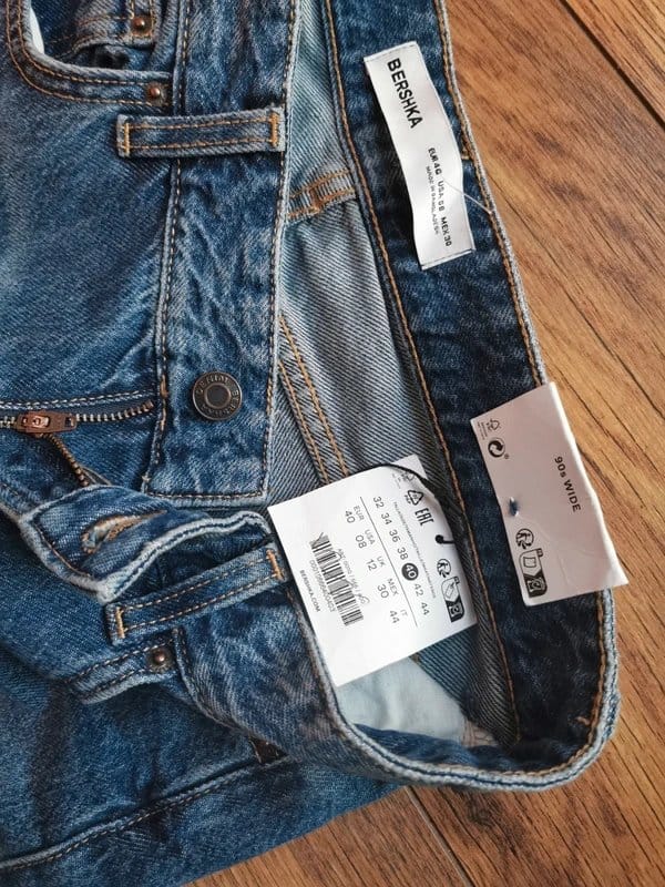 View Vinted's returns policyThe Bershka Navy Blue Wide Leg Jeans is made from denim.