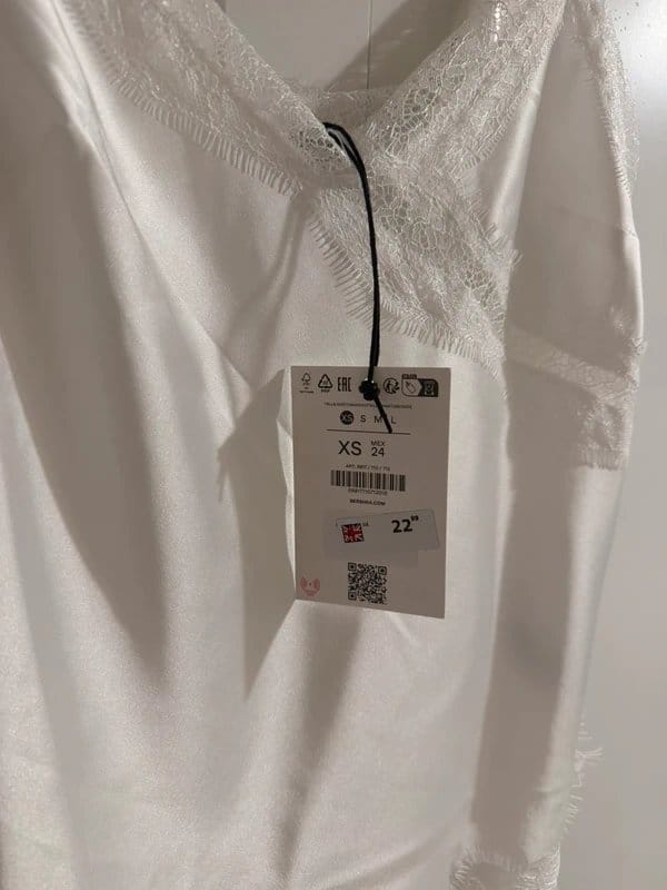 The Bershka White Silk V-Neck Top is available in sizes S.