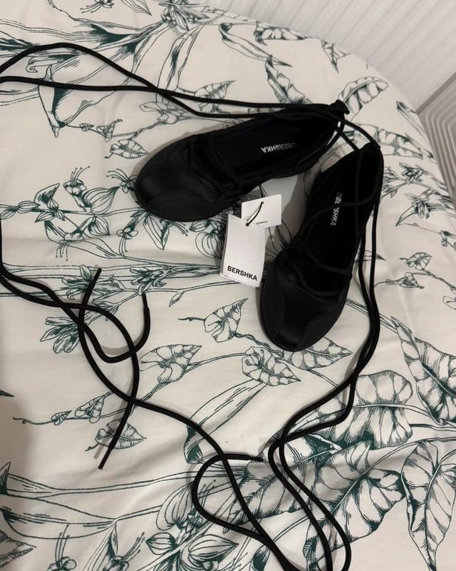 Trendy Bershka y2k lace shoes in black. Featuring a lace-up design and comfortable fit, these shoes are perfect for casual outings.