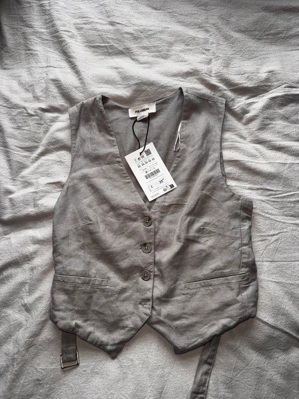 The Bershka Beige Satin Waistcoat is available in sizes S.