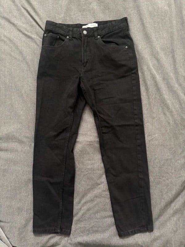See all outfit ideasClassic black denim jeans from Bershka featuring a straight-leg fit and five-pocket design. Perfect for a casual and everyday look.