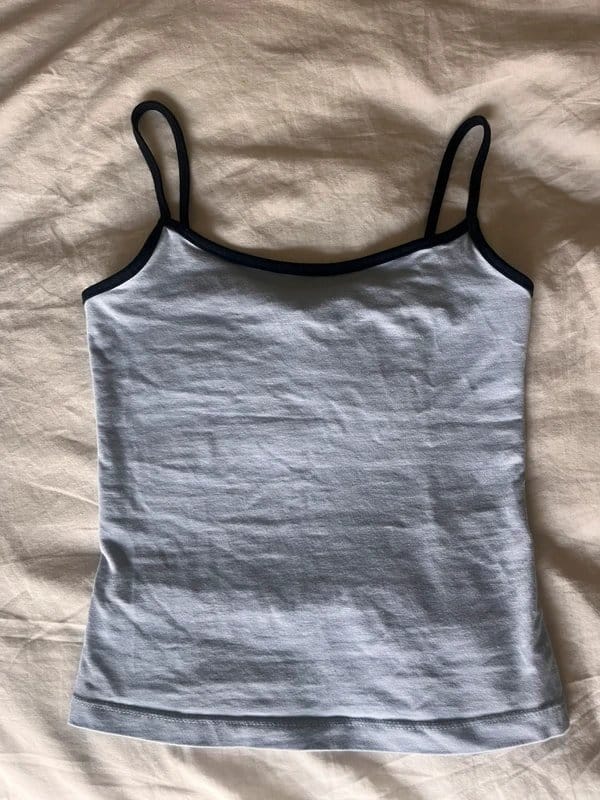 A light blue tank top by Bershka with dark blue straps. This sleeveless top is perfect for summer with its breathable fabric and flattering fit.