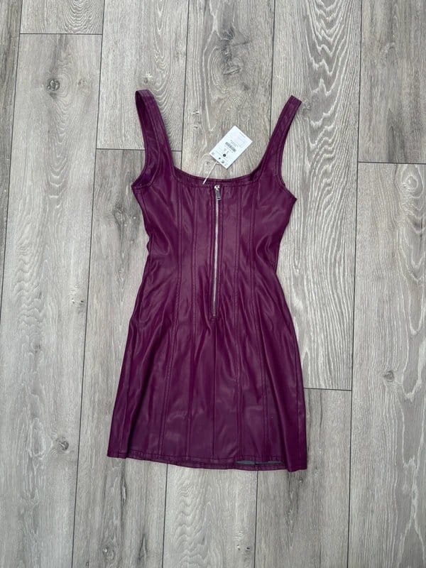 The Bershka Burgundy Leather Look Dress is available in sizes S.