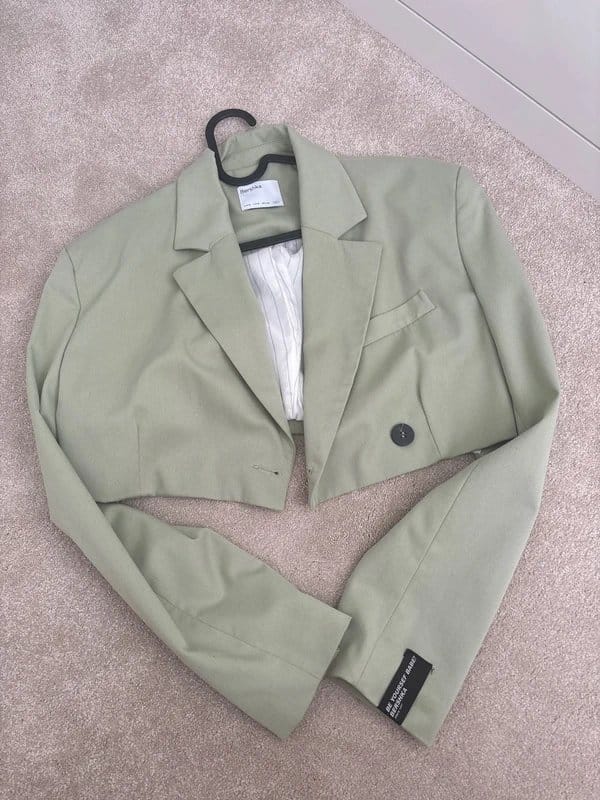 The Bershka Green Crop Blazer is made from polyester, cotton.