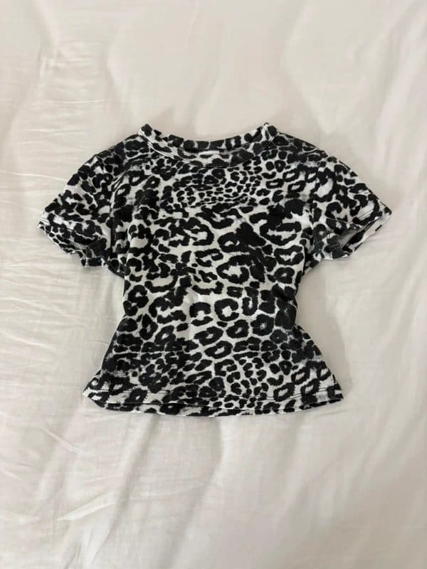The Bershka Black and White Leopard Print Baby Tee is ideal for casual, everyday.
