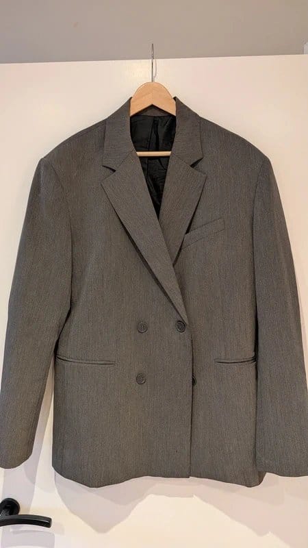 The Bershka Grey Oversized Double Breasted Blazer is available in sizes M.