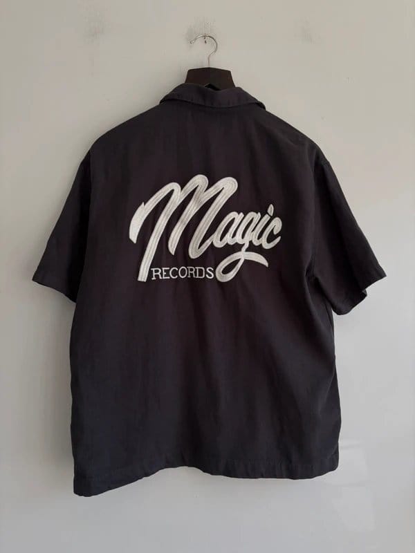 The Bershka Dark Grey Embroidered Zip-Up Shirt is available in sizes S.