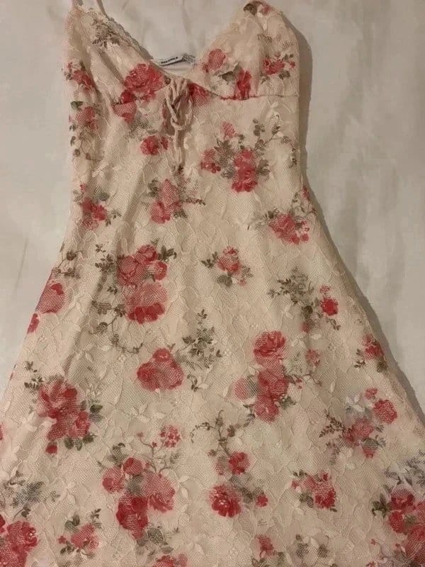The Bershka Cream & Red Floral Lace Mini Dress – Size XS is ideal for summer, holidays, parties, date-night.