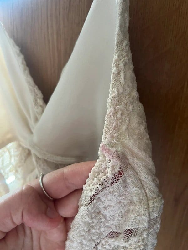 Charming off-white lace halter neck top by Bershka. Features delicate lace detailing and a small stain as shown in the photo. Ideal for summer wear.