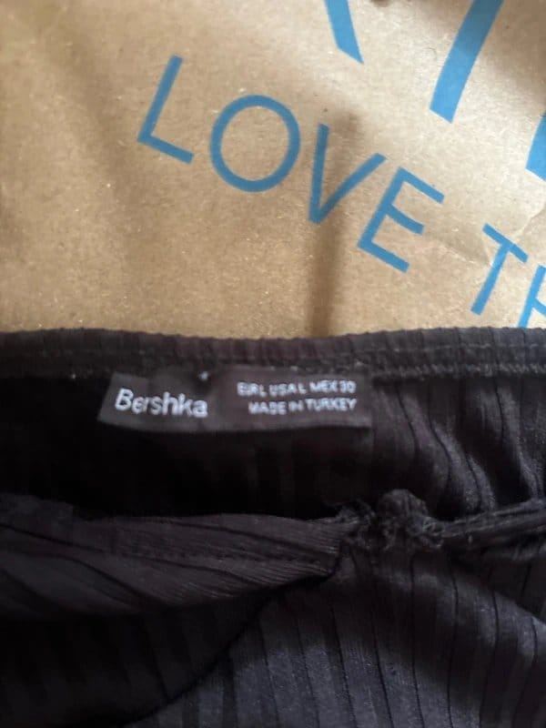 Stylish Bershka halter neck top in black satin. Features a slight rip at the top, adding a touch of casual charm. Perfect for a modern, chic look.