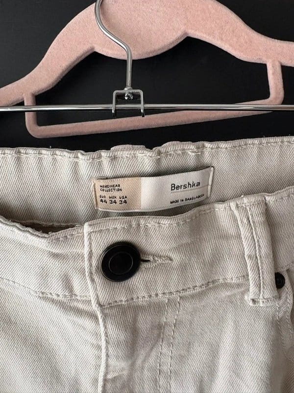Stylish Bershka men's skinny jeans in a soft cream colour. Made from durable denim, these jeans offer a slim fit and a modern look. Ideal for casual outings or smart-casual ensembles.