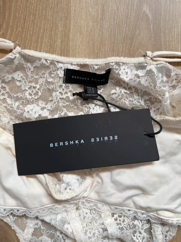 The Bershka Cream Lace Bodysuit is available in sizes M.