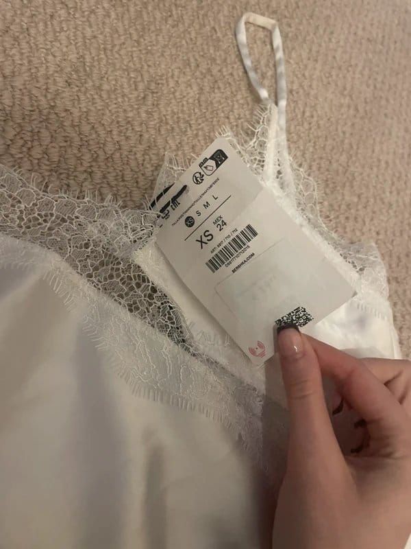 The Bershka White Lace Satin Top is available in sizes S.