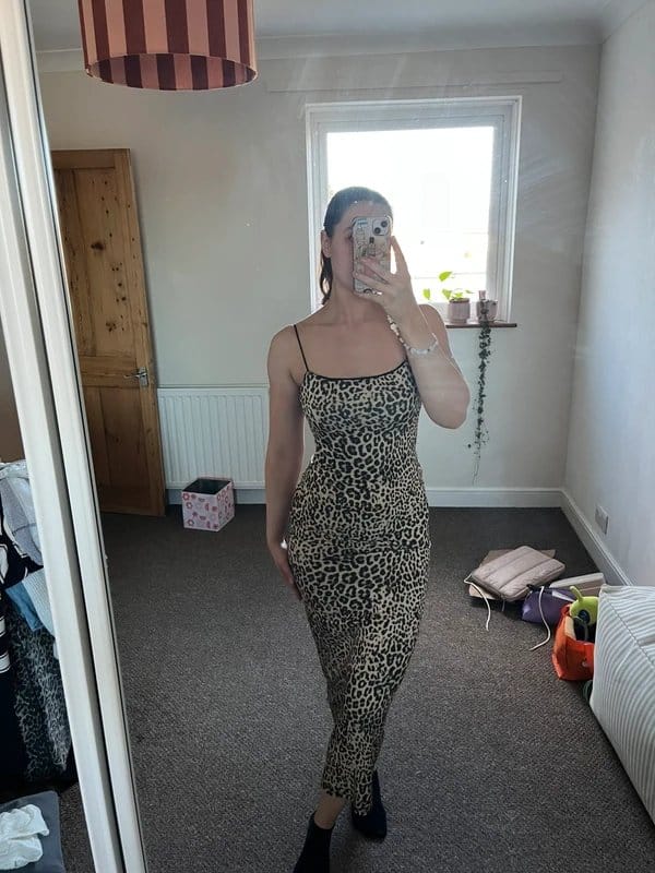 “Pair with black ankle boots and a statement necklace for a night out.”