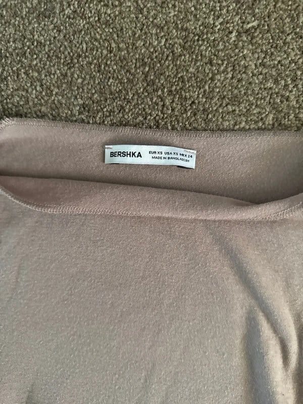 The Bershka Light Brown Boat Neck Ruched Top is available in sizes S.