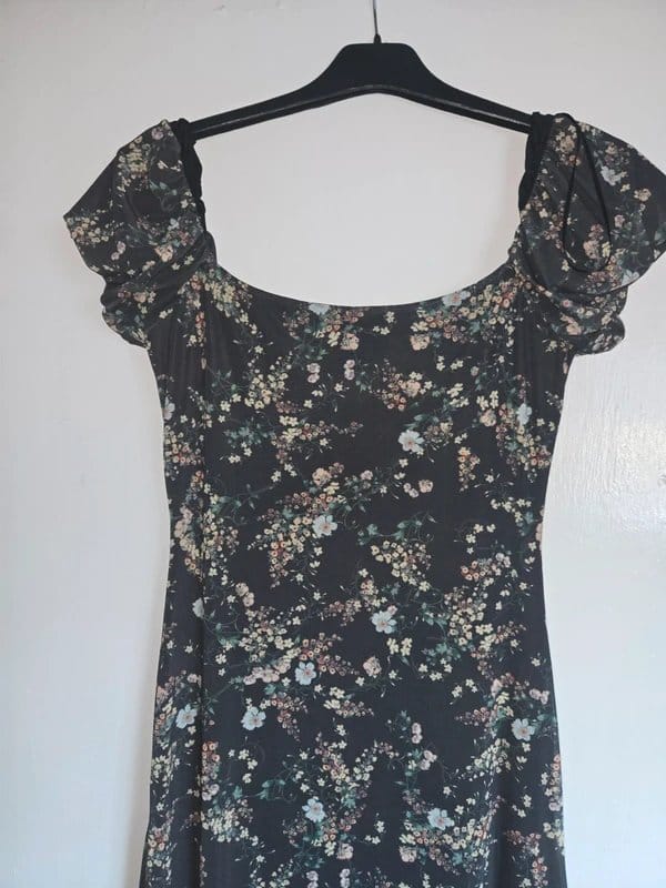 The Bershka Black Floral Print Long Summer Dress is available in sizes L.