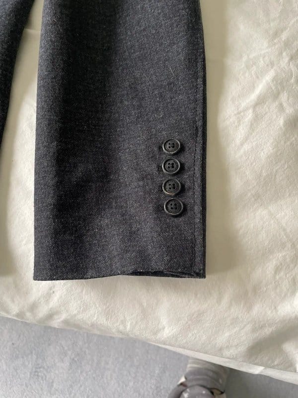 Stylish Bershka men's jacket in dark grey. Made from a textured wool blend, this jacket offers a classic, tailored fit with a notch collar and four-button front placket. Perfect for smart-casual occasions.