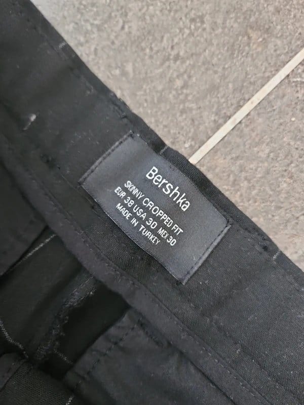 Stylish Bershka black skinny cropped fit pants with a modern, tapered leg design. Made from durable fabric, these pants offer a slim fit and a contemporary look.