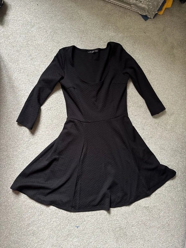The Bershka Black Textured 3/4 Sleeve Dress is available in sizes M.