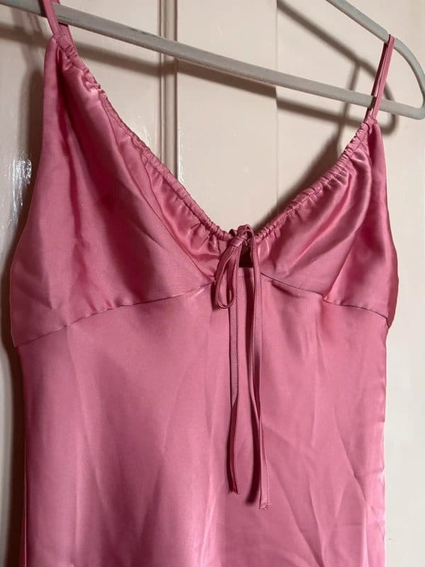 The Bershka Pink Silk Slip Dress is available in sizes M.