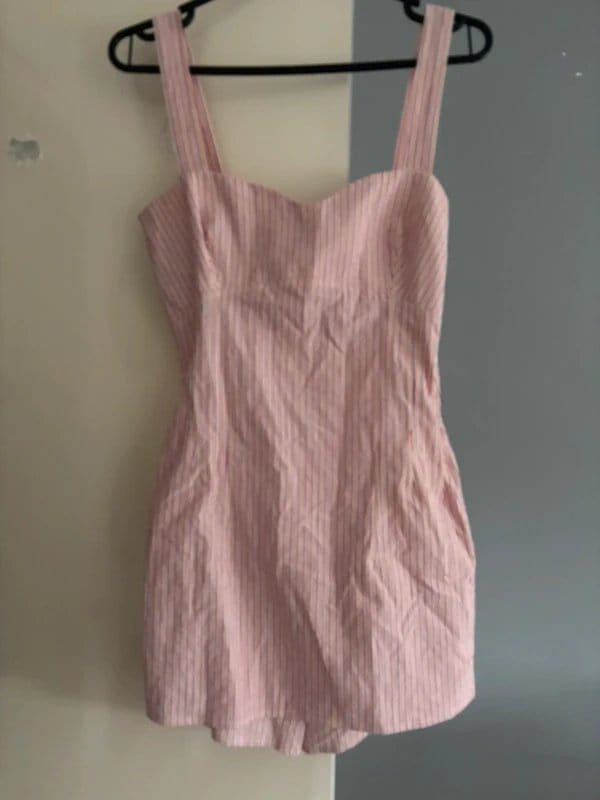 The Bershka Pink Striped Playsuit is available in sizes S.