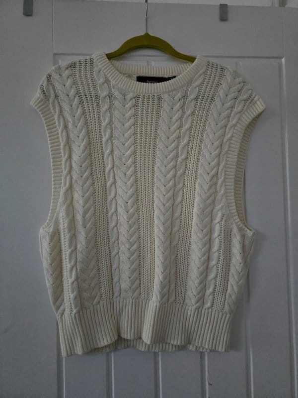 The Bershka Cream Knit Sleeveless Vest is available in sizes M.
