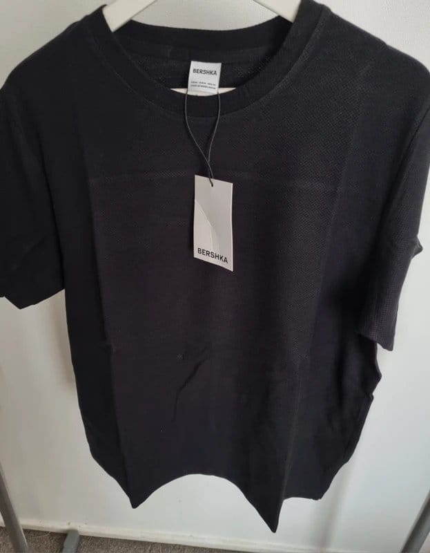 The Bershka Black Regular Fit T-shirt is available in sizes M.