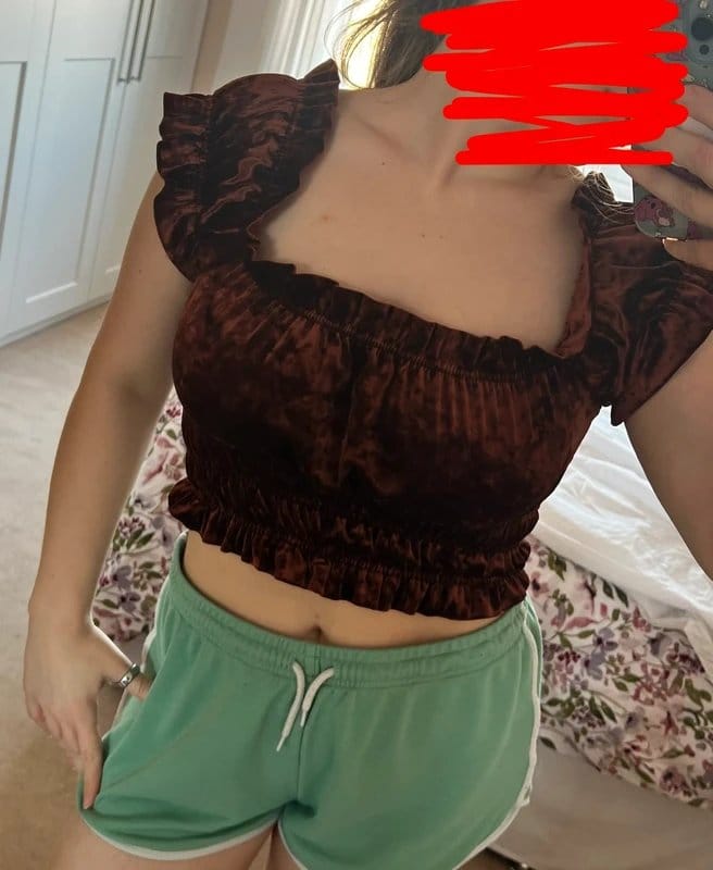 “Pair with high-waisted green trousers and gold hoop earrings for a chic night out.”