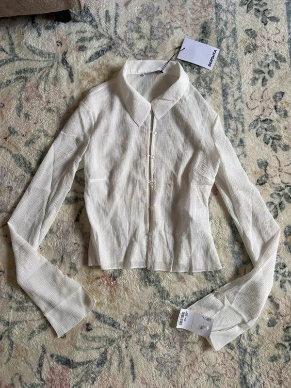 “Pair with black tailored trousers and white pumps for a chic work outfit, or with a pencil skirt and statement earrings for evening events.”