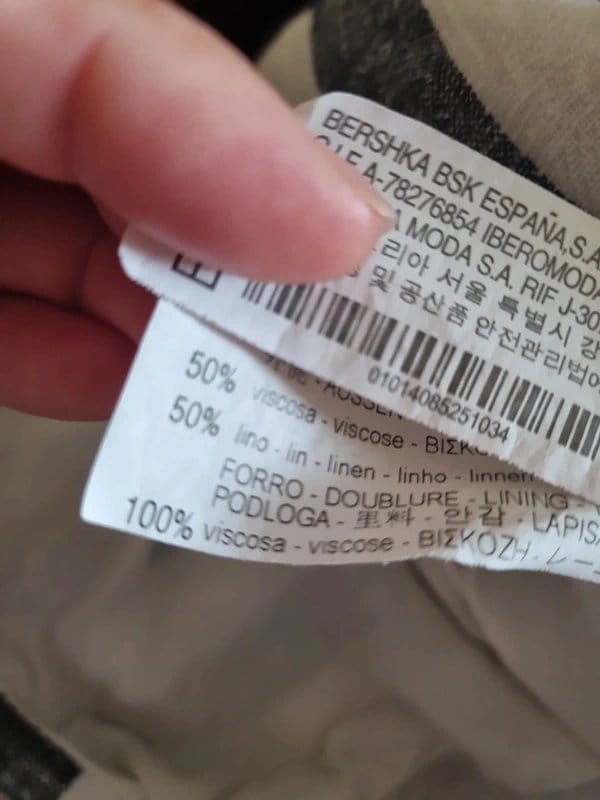 The Bershka Black and White Striped Jacket is made from viscose, linen.