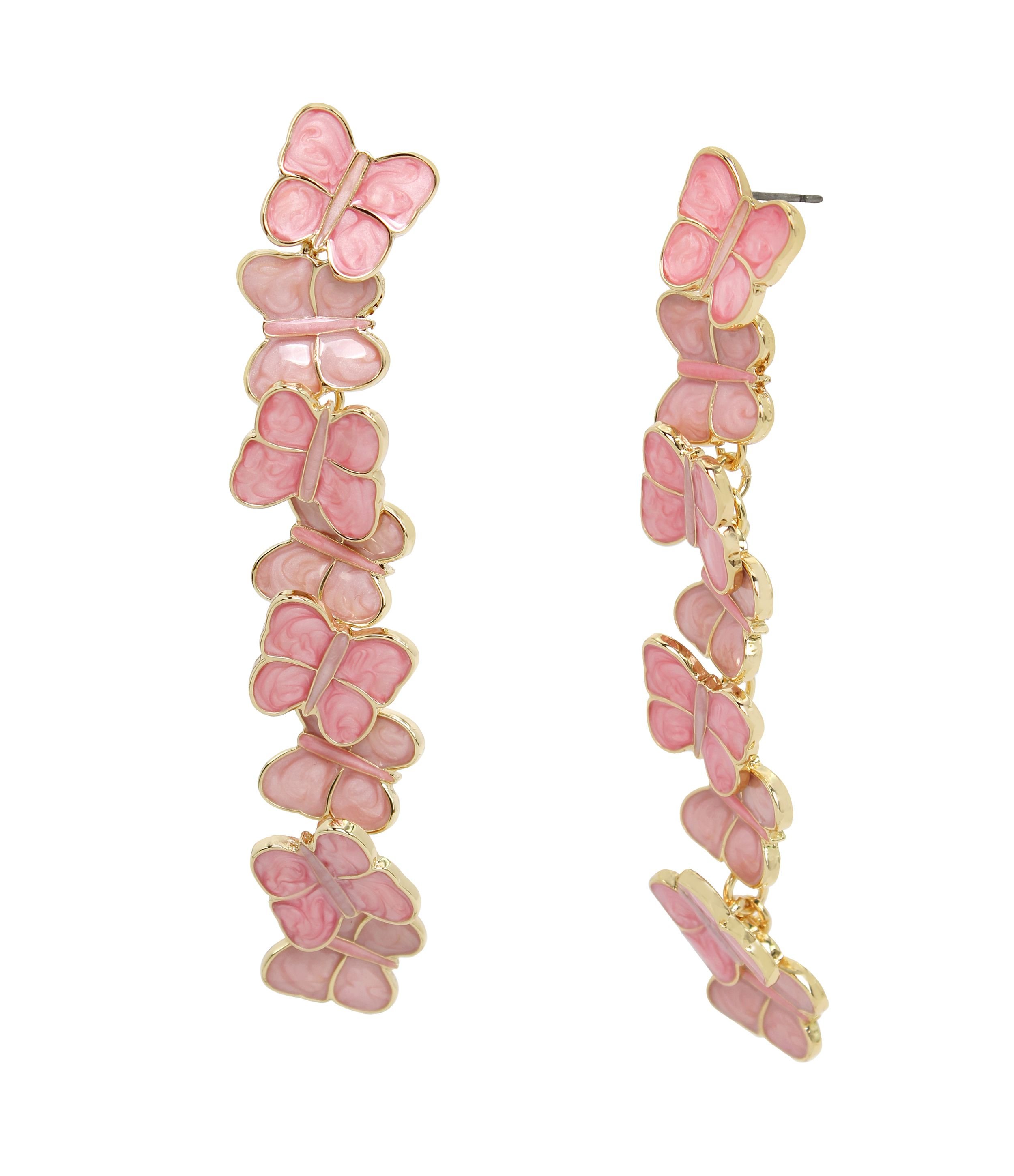 The Betsey Johnson Pink Enamel Butterfly Linear Earrings is available in sizes ONE SIZE.