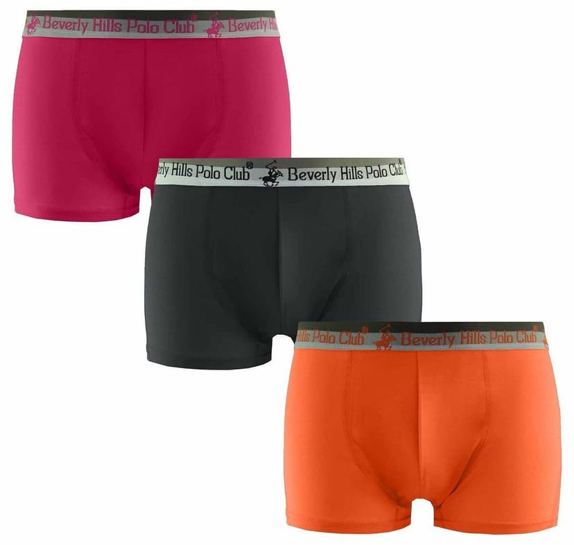 Step up your essentials with the Beverly Hills Polo Club Men's 3-Pack Trunks, designed for comfort, style, and everyday wear. This set includes three vibrant pairs of trunks that combine quality construction with a fashionable flair, making them a staple in any man's wardrobe.