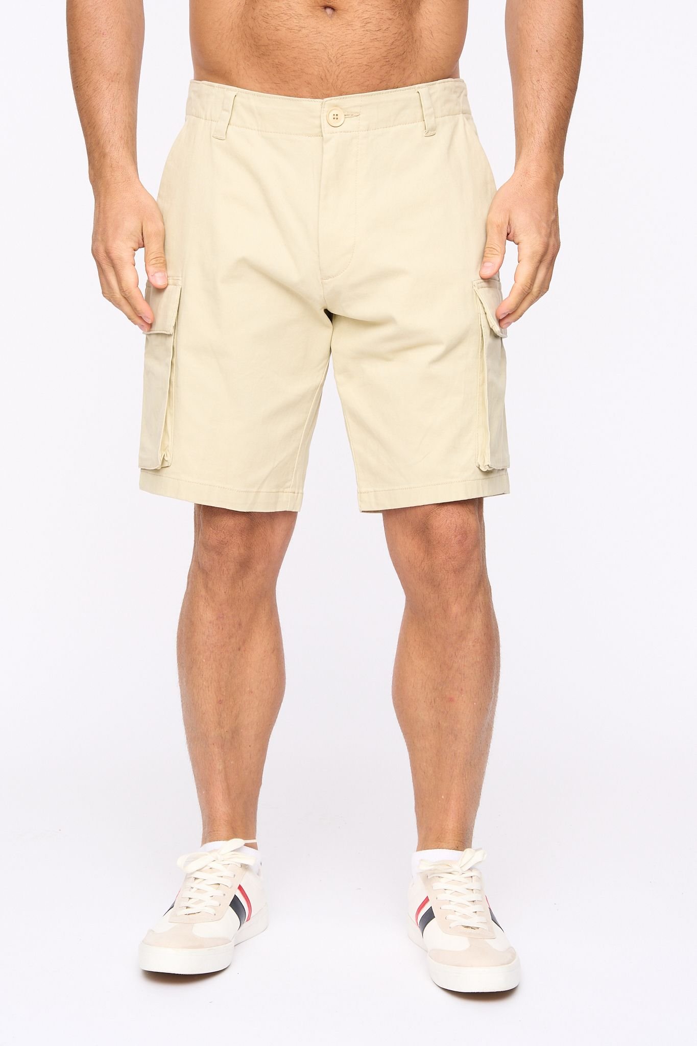 Engineered for versatility and all-day comfort, these Light Stone cargo shorts feature a modern above-knee cut. Made from cotton stretch fabric, they offer a streamlined look suitable for both urban and outdoor settings.