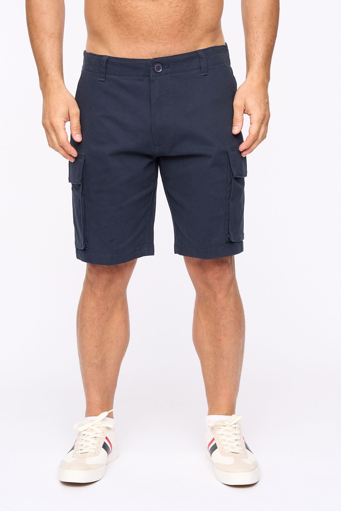Engineered for versatility and all-day comfort, these Navy Cotton Stretch Cargo Shorts feature a modern above-knee cut. Ideal for both urban and outdoor settings, they offer a streamlined look with multiple pockets for practicality.