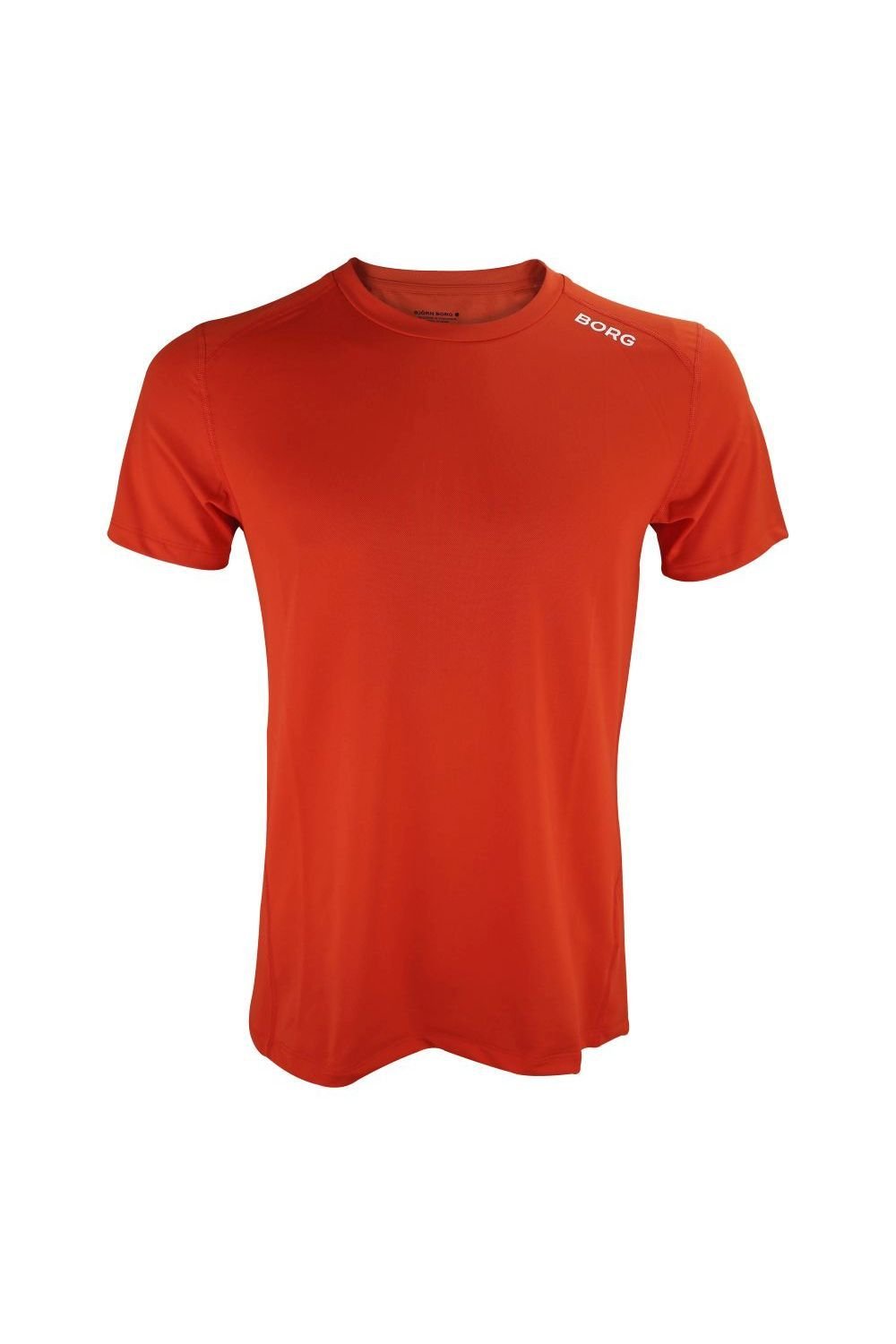 High-performance Bjorn Borg T-shirt in burnt orange. Made from lightweight, polyester stretch, this T-shirt offers high moisture-wicking functionality and breathability, ensuring you stay dry and cool during workouts.