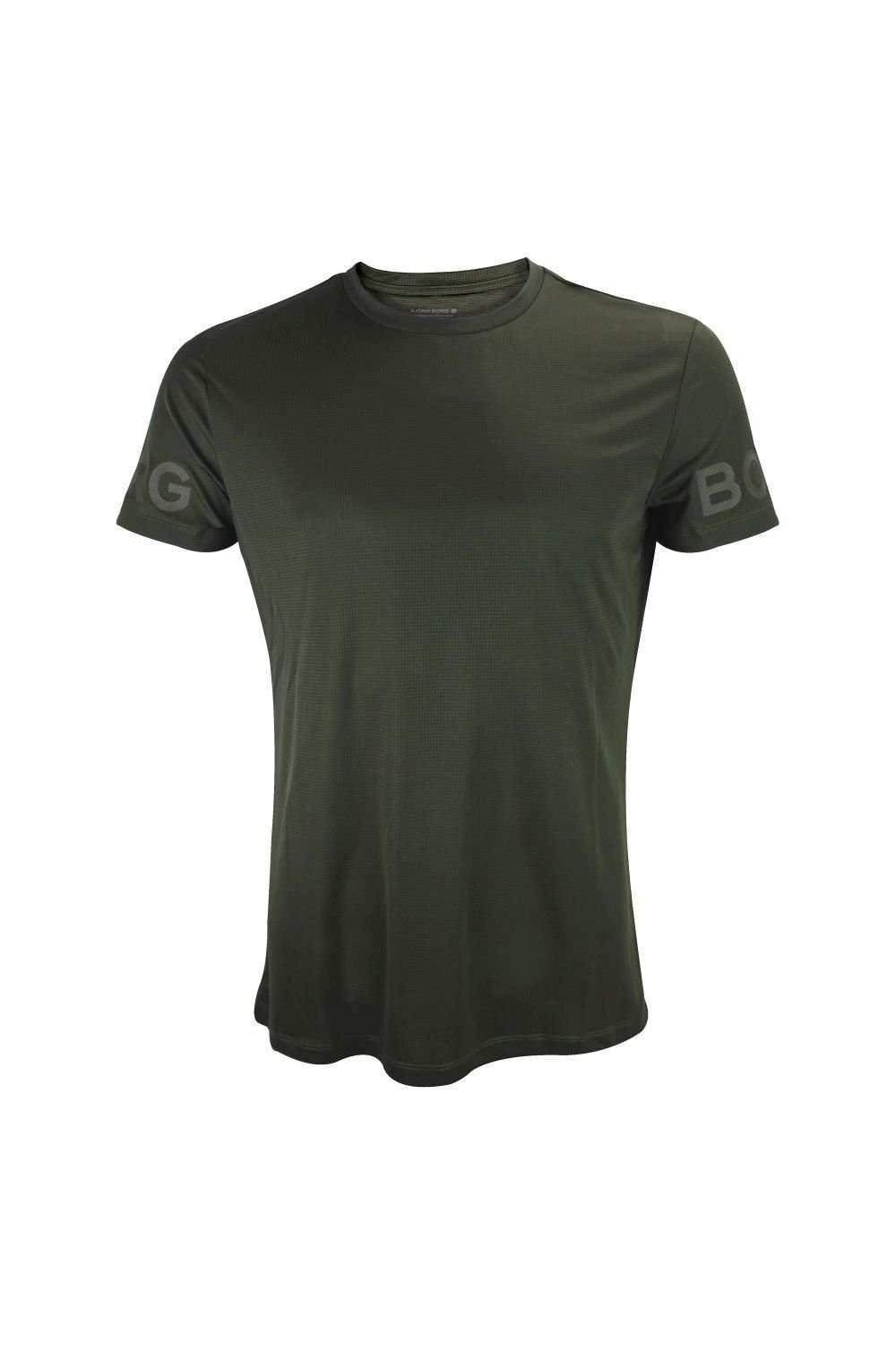 The Bjorn Borg Green Polyester Athletic T-Shirt for Men is made from polyester.