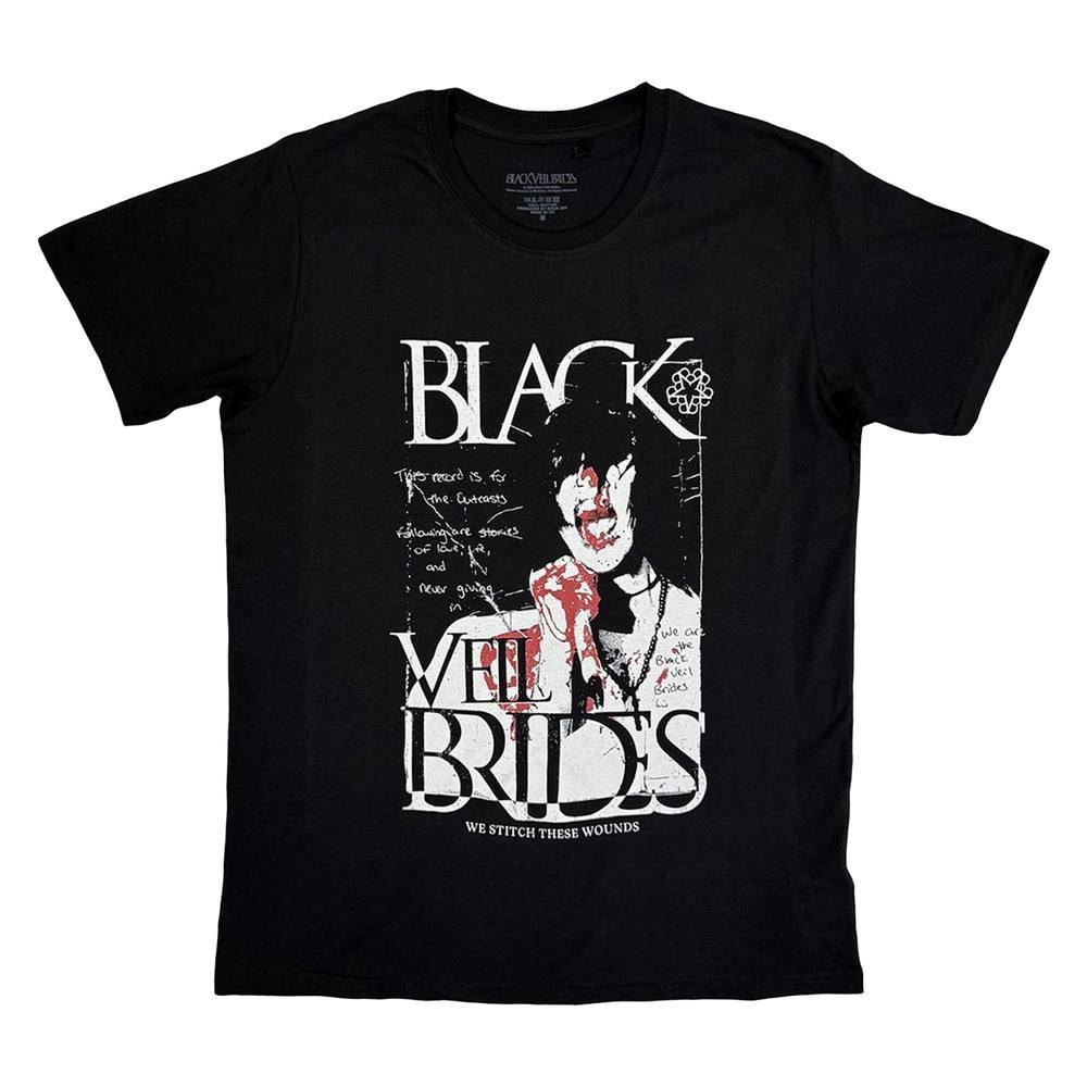 The Black Veil Brides Men's Stitch These Wounds T-Shirt in Black is available in sizes XL.